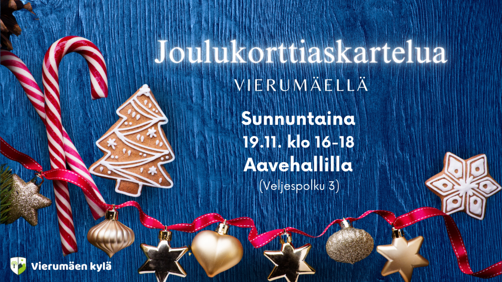 Tervetuloa niin lapset kuin aikuisetkin askartelemaan joulukortteja Aavehallille 19.11. Tarjolla jouluista tunnelmaa, iloista seuraa, piparia ja glögiä!