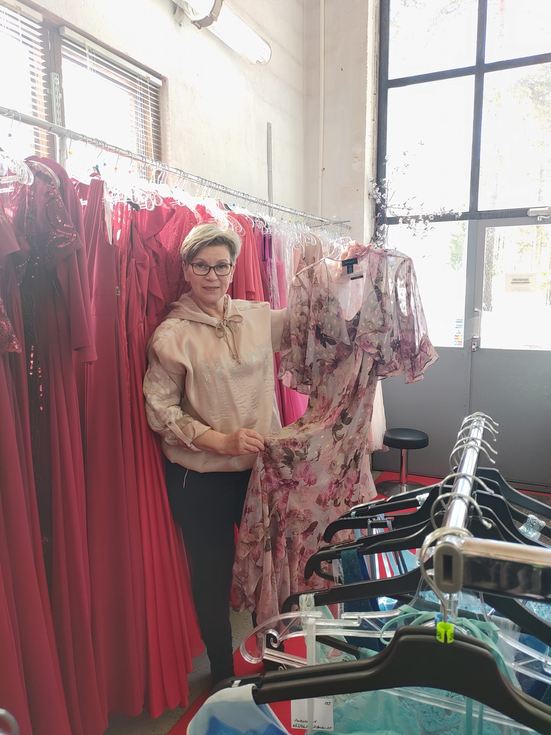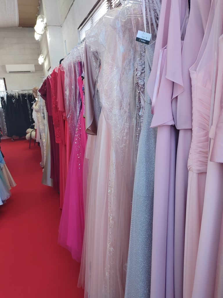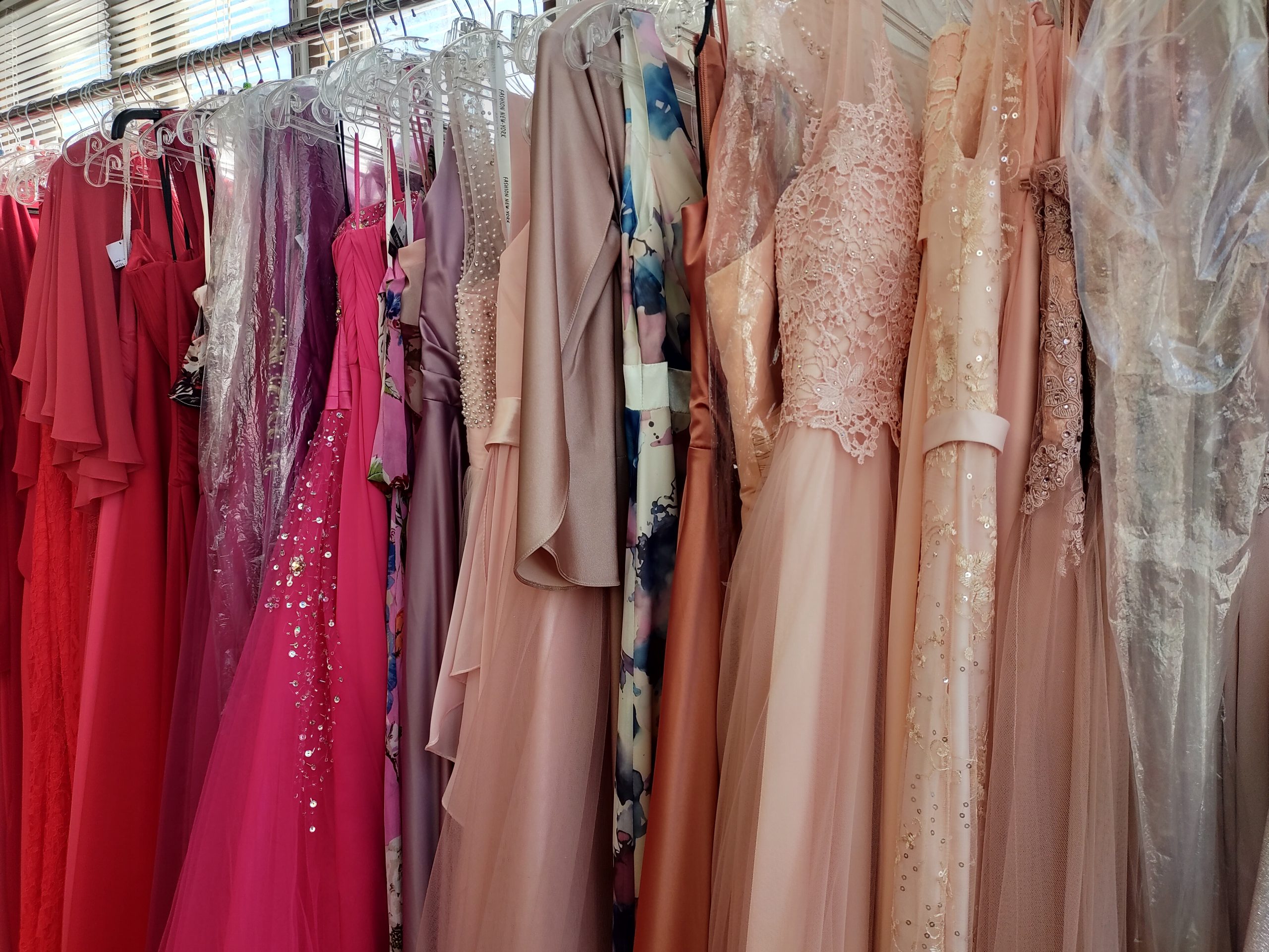 Ja kun rännän keskeltä astuu sisään Irman liikkeeseen, todella tuntuu siltä kuin tulisi toiseen maailmaan. Rekeissä roikkuu valtavat määrät upeita mekkoja väreittäin lajiteltuna. Hyllyllä kimaltelee korut ja tiarat ja myös pikkulaukut on järjestelty sateenkaaren väreissä.