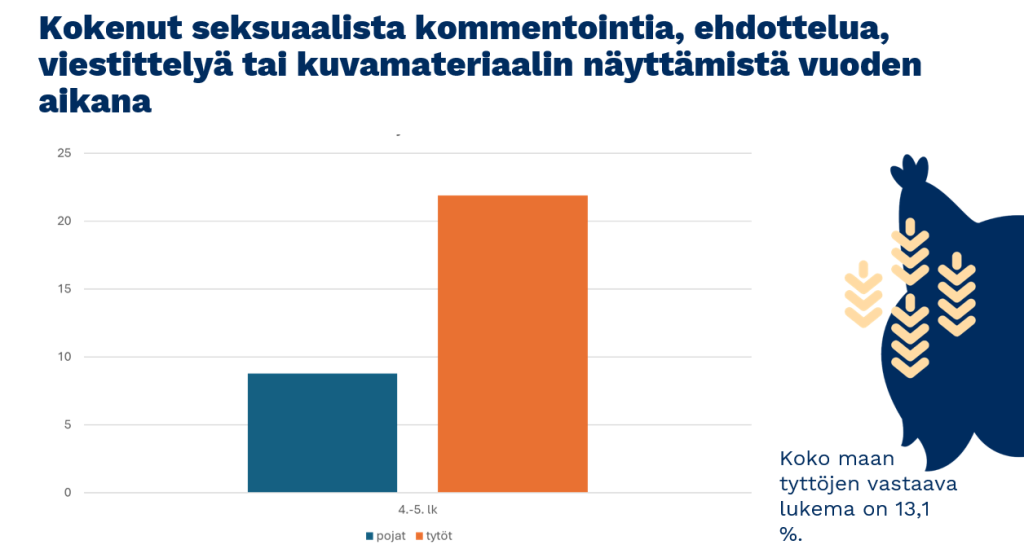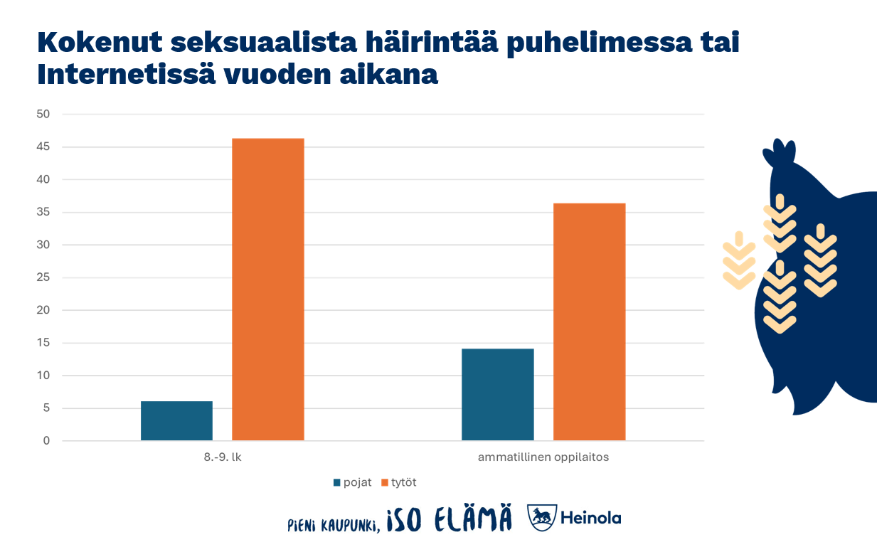 Iso osa 11-17-vuotiaista lapsissa on kohdannut netissä groomingia eli houkuttelua seksuaalisiin tarkoituksiin. Viimeisen vuoden aikana seksuaalista kommentointia, ehdottelua, viestittelyä tai kuvamateriaalin näyttämistä on 4.-5.-luokkalaisista (10-11-vuotiaista) Heinolalaisista kyselyyn vastanneista kohdannut pojista lähes 10 prosenttia ja tytöistä yli 20 prosenttia. Yläasteikäisistä tytöistä näitä on kohdannut jo peräti 45 prosenttia vastaajista.