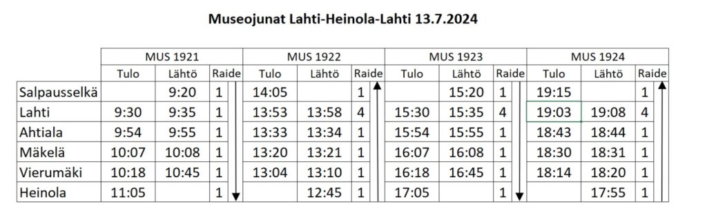 13.7.2024 Museojunamatkat Lahdesta Heinolaan
